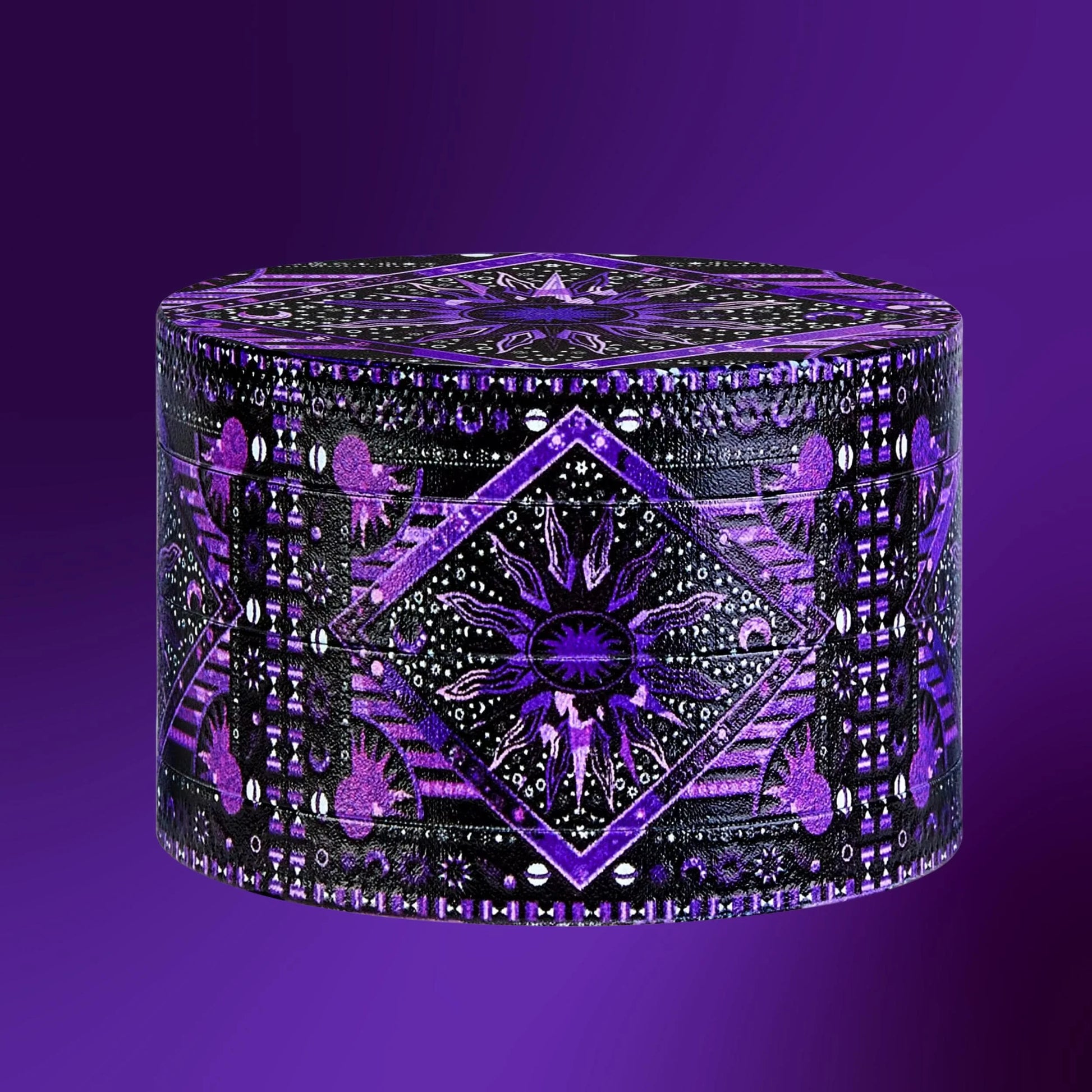 Psychedelic Sun Moon Herb Grinder | 4-Layer Zinc Crusher 4-Layer Grinder with Pollen Catcher